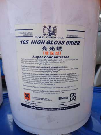 適用于各種配備自動上光的洗車設備。干燥上光蠟能夠迅速附于車表,形成疏水層,使車體表面的水迅速變成水珠滑離車體,成倍增加風干或擦干效果。同時在車體表面留下一層光亮的保護膜,減少空氣中的酸雨等物質對漆面的腐蝕。