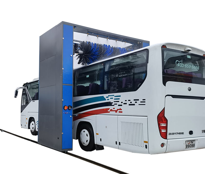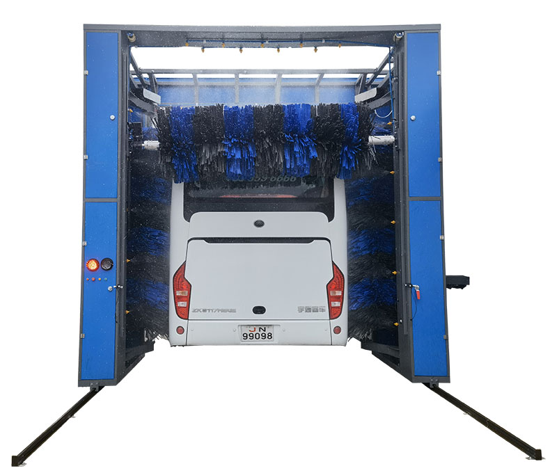 巴士洗車機的產品特點:牽引系統自動行走、自動返程、自動停止控制系統;側刷自動張開和收縮,正反轉自動切換控制系統;橫刷自動升降、正反轉自動切換控制系統;.噴射系統自動噴射液體;故障報警、自動停機控制系統。